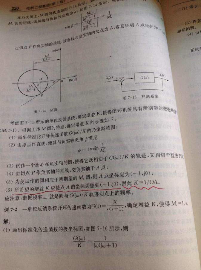 控制工程基础,P调节 如何利用等M圆确定K值?