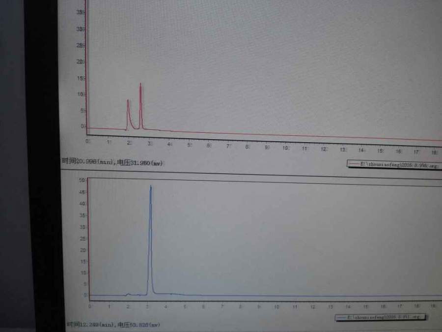 这是两种标样的液相,条件溶剂相同,是不是就可以排除上面的第一个峰不是溶剂峰,是标样的问题