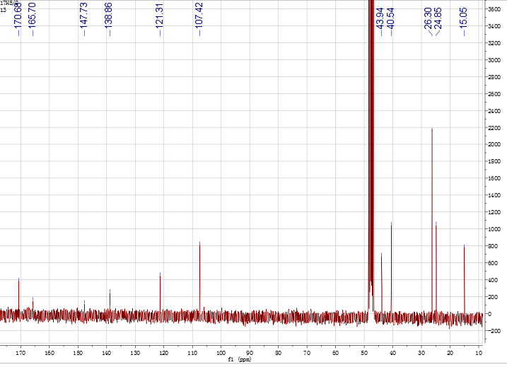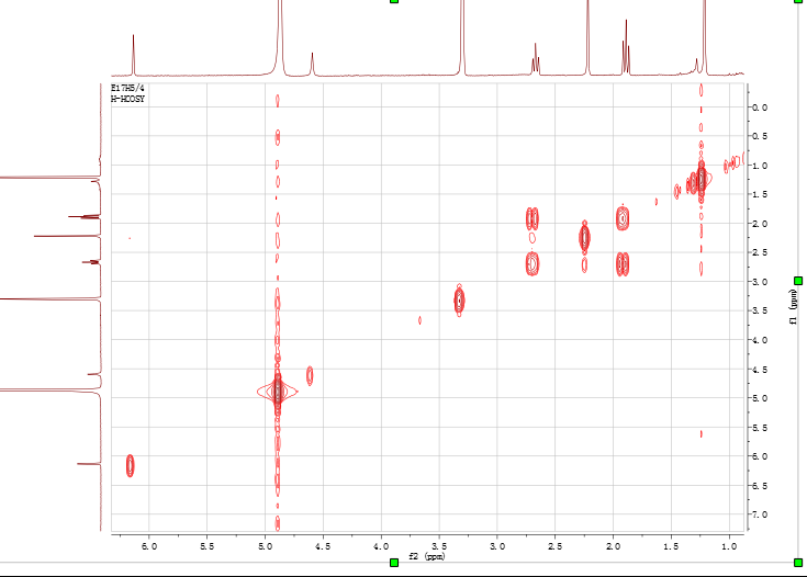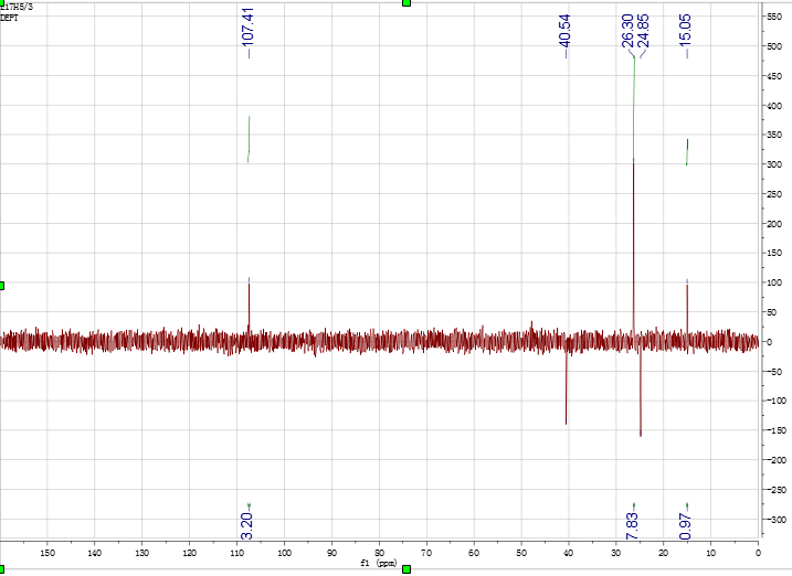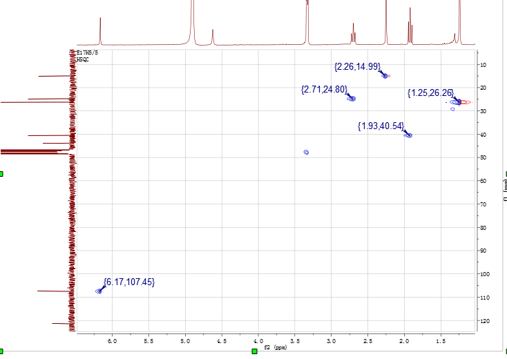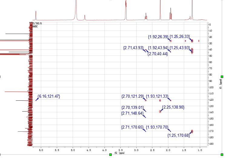 最近分到一个简单化合物,低分辨显示分子量177,氘代甲醇做的谱。贴上全套谱。有两个疑问:化学位移为170.68PPM的碳是什么碳,氢谱化学位移4.59PPM的单峰QC上无相关BC也无任何信号。特来求助大神帮忙解谱![]() ![]() 2.png 3.png 4.png 5.png 6.png@lifeliuyan |