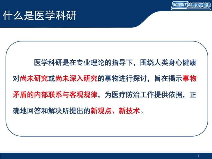 目前国内医学的发展越来越要求临床医生以及研究注重科研,但相当一部分临床医生对规范的科研内容和程序存在较大的认识误区,导致临床医生对科研项目有想法申请而没办法实施的情况时有发生。本课程从什么是医学科研开始对医学科研进行一个相对全面的介绍,主要对象面向于在读的硕博士研究生和临床医生群体。课程包括了基础科研、临床科研等相关内容,望本课程能对那些在科研课题的选题和写作方面有疑惑的同道有一定帮助。