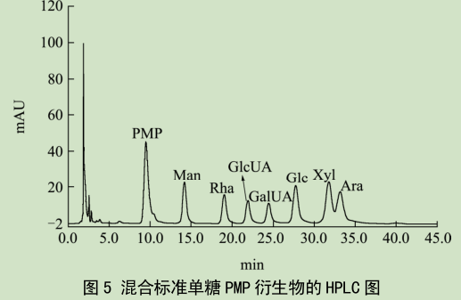 最准确的就是先一个一个进样,确定各单糖的出峰的时间,也可以参考文献,一般实验条件相同单糖的出峰顺序也一样,然后进混标,做标准曲线,根据各单糖的浓度与峰面积的关系推算出计算各单糖比例。峰面积由液相自动积分获得不是更简单。 |