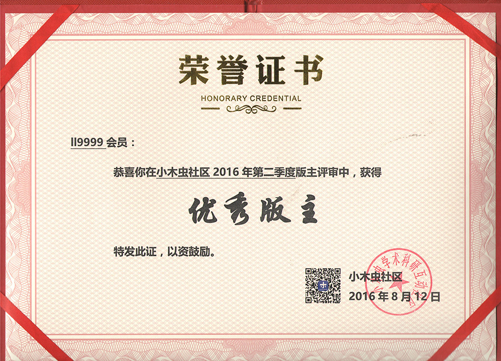 恭喜【ll9999】获得2016年第2季度优秀版主