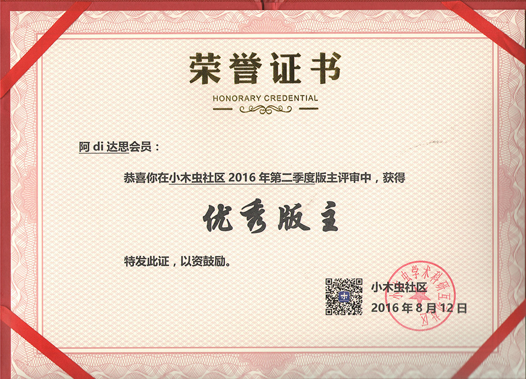 恭喜【阿di达思】获得2016年第2季度优秀版主