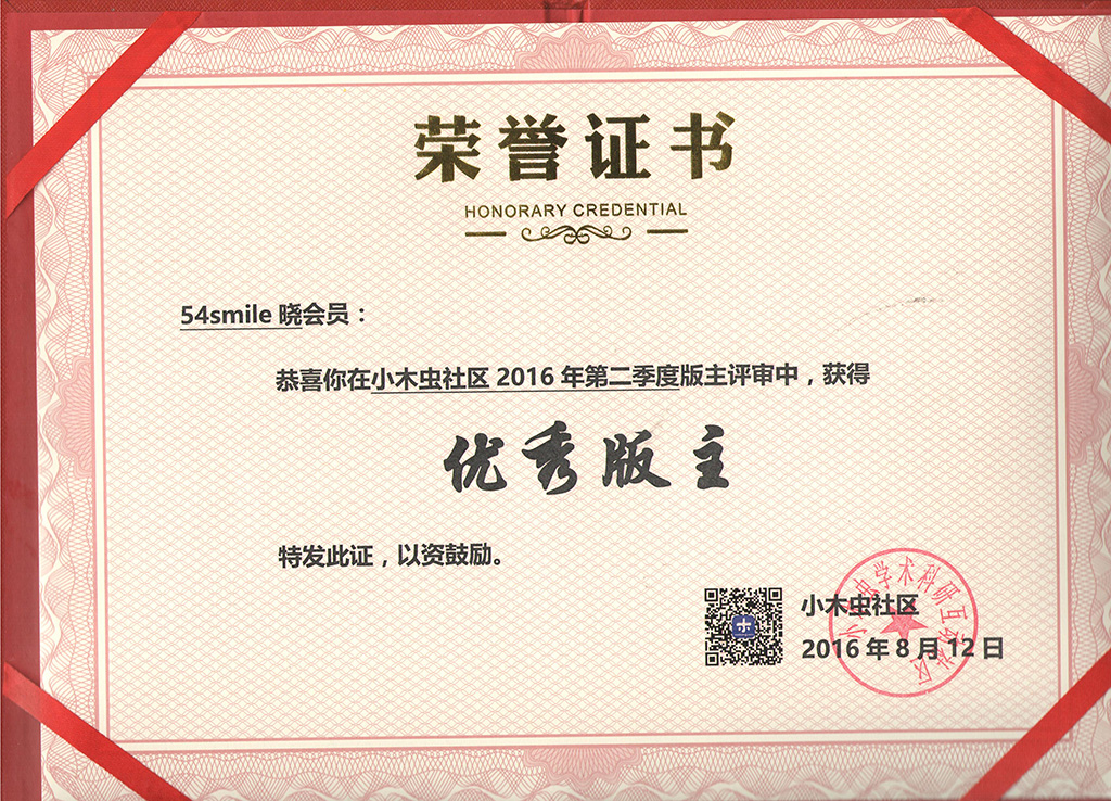 恭喜【54smile晓】获得2016年第2季度优秀版主
