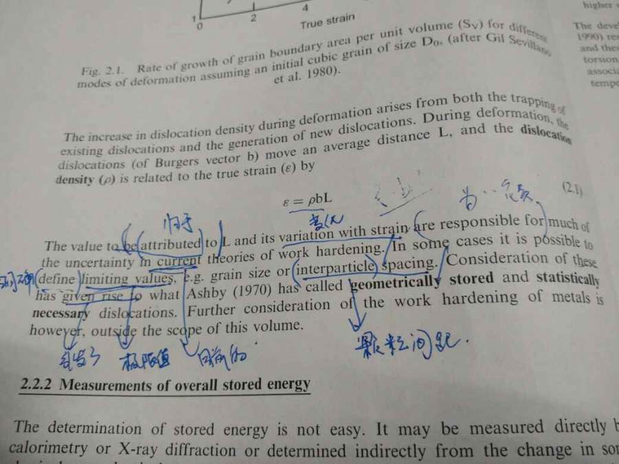 | statistically stored dislocation (SSD) 统计储存位错, geometrically necessary dislocation (GND) 几何必需位错。但注意真实晶体中是没有所谓“统计储存位错”和“几何必需位错”的,这两个概念是为了计算时描述问题方便人为定义的,比如,如果位错组态是SSD dominant,则可以判断dislocation induced stress可忽略不计。还要注意,“几何必需位错“字面上容易理解成对“导致样品几何形状变化的位错“,很多资料也讲“统计储存位错”对塑性变形无贡献,但这是错的。 |