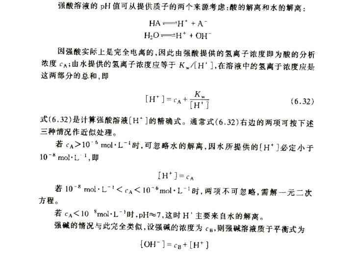 解释一下,强酸溶液中水电离的氢离子浓度的表达式以及强碱溶液的质子平衡式 发自小木虫Android客户端 |