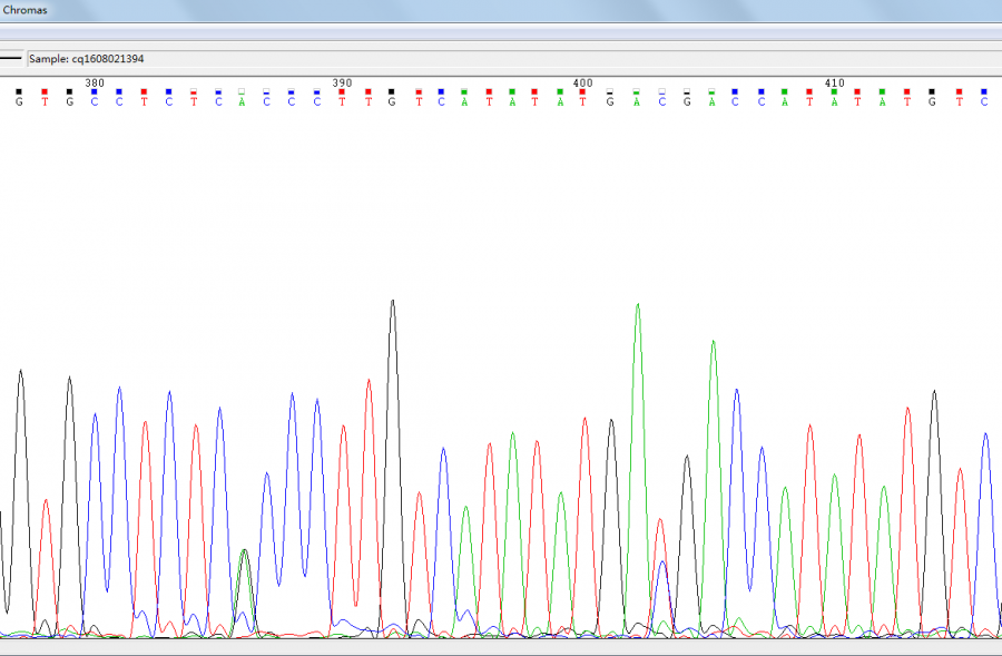 | 样品是几倍体?你的概率不懂什么意思,如果是PCR样品的话,理论上百分之百都是会出现这种图的,双峰的位点证明存在两个不同的模板,只是他们单碱基不一样,就是所谓SNP,上图跟下图分别两个。比如人的一段片段,因为人是二倍体,一个来至母亲,一个来至父亲,父亲和母亲可能在这个序列有差异,通过PCR扩增特异片段,测序就会出现这种结果。一般出现在调控序列,基因里面比较少。 |