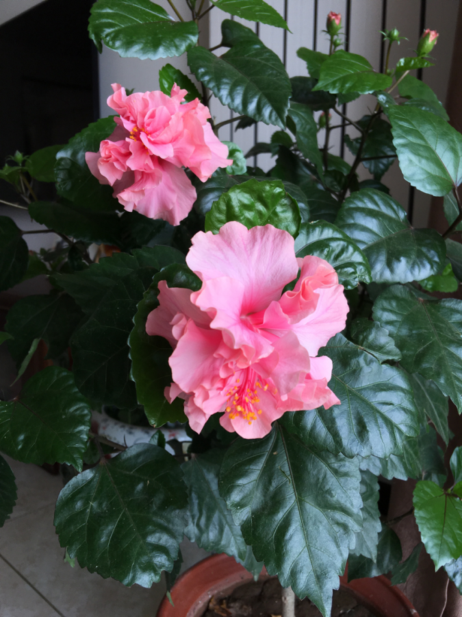 重瓣朱槿,又叫朱槿牡丹,是锦葵科植物朱槿(又名扶桑)的变种。是强阳性植物,很喜欢阳光。