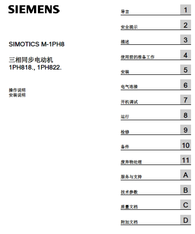 西门子三相同步电机 1PH818 安装操作说明