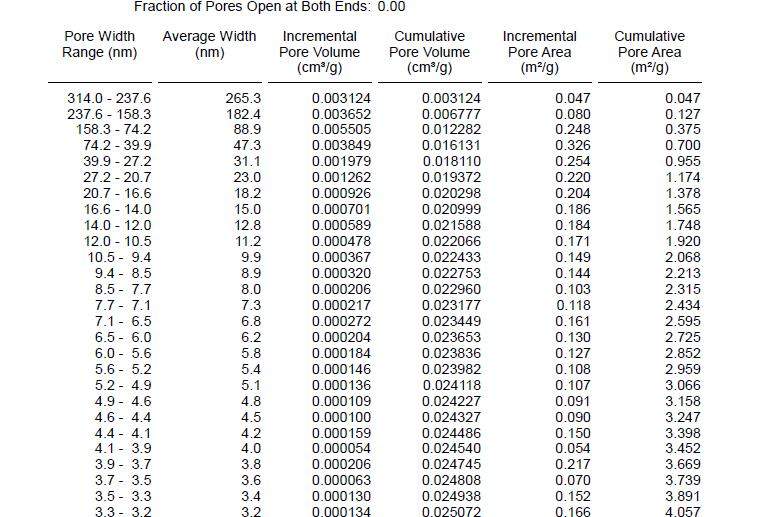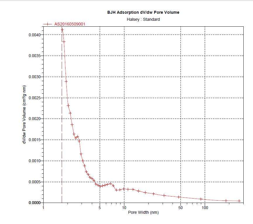 如图所示,图1为其给的PDF格式的部分数据,现在需要做纵坐标为dV/dw的孔径分布图,但是无法做出其给的图2形式的分布图。并且做出的平均孔径也与分布图不符。其给出的孔径为:BJH Adsorption average pore width (4V/A): 12.3472 nm。求教大神。 图1-孔径分布1#部分数据.jpg 图2-孔径分布1#图.jpg |