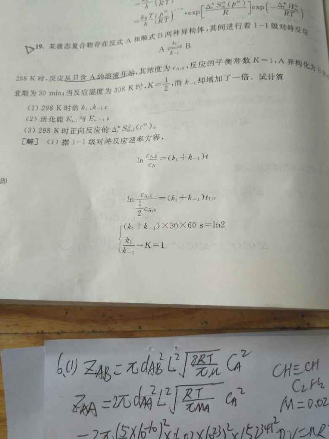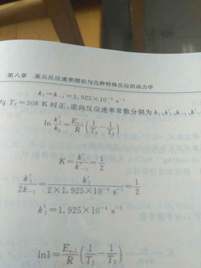 感觉平衡常数K=1有问题,书上的那个公式是不是有问题呀,为什么会是两个速率常数相加?数率常数相加是平行反应的计算吧。