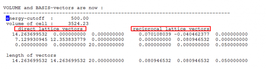 计算有效质量时,将距离转换成Bohr-1,但在右下角这个公式中 原帖 http://muchong.com/bbs/viewthread.php?tid=9806163&fpage=1&target=blank 如果Col(A)的数据是用VASP计算(或P4VASP)得到,那么Col(A)为倒格子中K点之间的距离,单位已经是1/Å了(数值需要乘以2π这个常数),a为晶格常数(单位为Å),则1/a单位也为1/Å 因此这个公式的结果单位为1/Å2。 而需要转换成的是长度的-1次方。Bohr和Å转换只是一个倍数关系,不会出现-2次方的关系,因此这个公式在量纲上应该是有问题的。 附上为什么在VASP(或P4VASP)结果中Col(A)的单位为1/Å。 这是我从VASP中的OUTCAR中截的图。 正格基矢(direct lattice vectors)的三个分量(三行)在xyz轴上的分量(三列)单位都是Å。 下面是计算倒格基矢(reciprocal lattice vectors)的方法 可以看到输出的晶胞体积以及倒格基矢和上面的图中VASP的倒格基矢是一样的。以b1为例,a2叉乘a3,根据矩阵叉乘的法则 叉乘后在xyz轴上的分量的单位为Å2, 再除以体积V(单位Å3)后,单位变成Å2 /Å3=Å-1,即1/Å 但是VASP在计算倒格基矢时没有乘以2π(图中(*xxx*)注释部分),因此在长度转换时要把数值先乘以2π。 不知道我的推导有没有问题,还是关于有效质量计算的那个长度转换公式我理解的不对,请各位虫友讨论指正,谢谢! [ Last edited by llh2010 on 2016-8-19 at 09:26 ] |