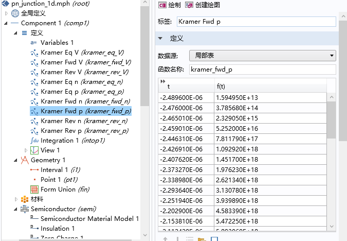 本科生求教各位前辈: (1)请问COMSOL中pn结案例里面这组变量就是”kramar_xxx之类的“是什么意思?而且还自带一组对应的数据。 (2)另外,我仿照这个pn结模型构建了一个其他材料的pn结,运算之后出现了这个错误能不能帮忙解释一下?多谢! 奇怪的变量.PNG 运算后的问题.PNG@wuming524 |