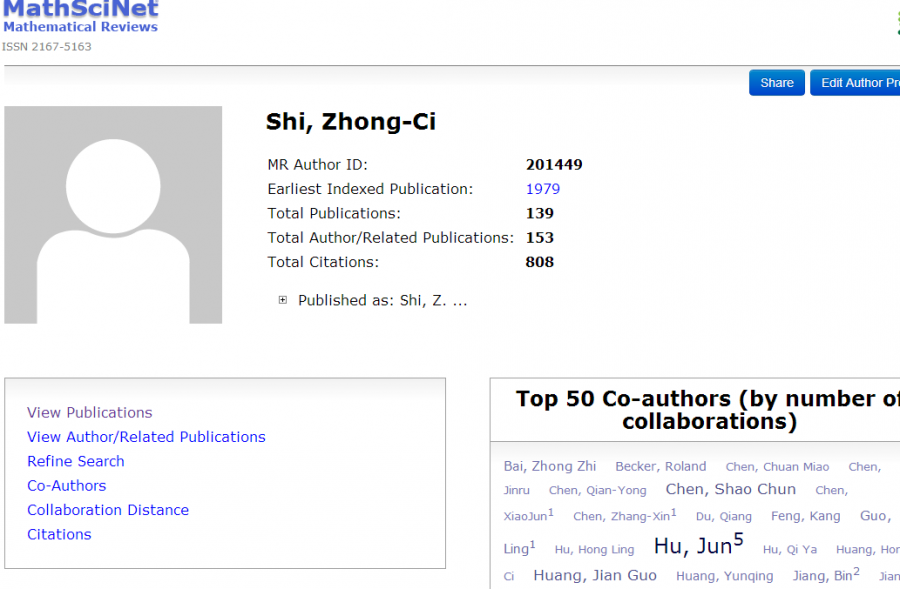 我是数学专业的。在我们数学方向有个美国数学会的MathSciNet网站(http://www.ams.org/mathscinet/index.html),在这个网站上可以查询一个数学方向的学者发表了哪些文章,还挺全的。比如下图是查询一个数学院士石钟慈的资料截图。 我想问下,物理方向是不是有类似的查询发表文献的网站? a.png |