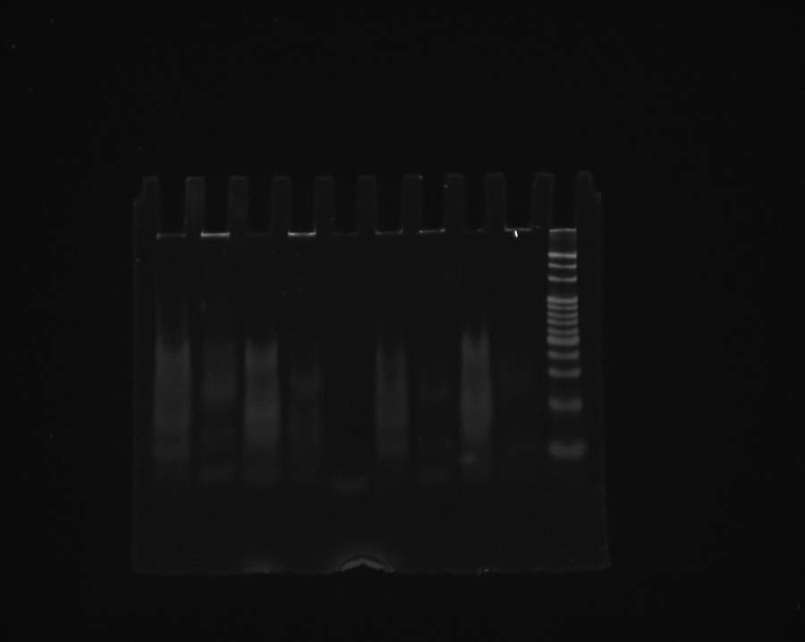 我是用公司合成的小DNA链合成四面体,但是电泳条带总是弥散的。 难道是降解了?可是刚pcr完就去跑电泳了啊。 程序 95℃ 10min 4℃ foever 这已经是第三次了,之前没有结果还以为是buffer配的不对,现在看来不是啊 难道是我上样量太多? 10μL 因为上块5μL 没有什么信号 或者就是我用紫外分光光度计定量的时候就没定准??? 20160820A.jpg |