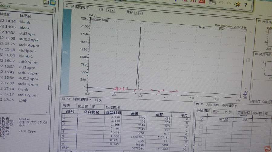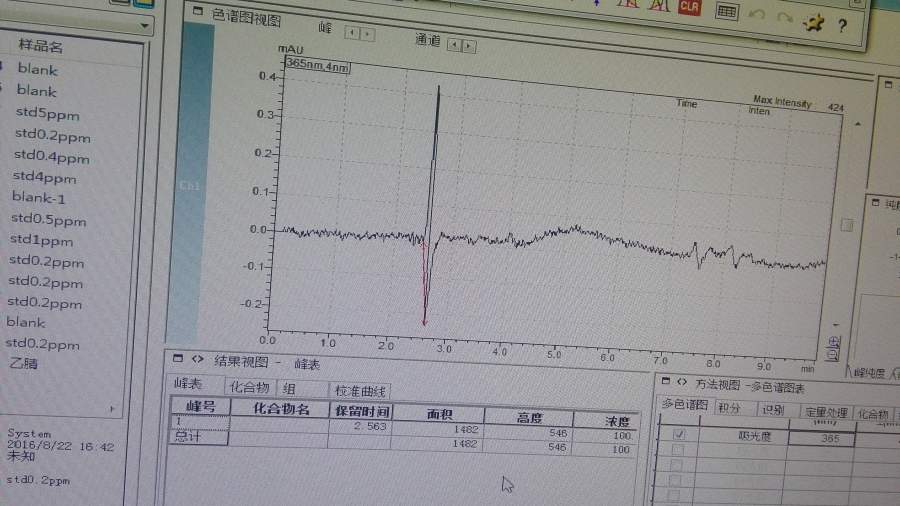 请问一下,液相色谱做甲醛,我走了0.2ppm的标样第一次能正常出峰,同一个进样小瓶里面的标样再进一针时就不出峰了,请各位大神指教是怎么回事?很急第一张图是正常出峰的图,第二张没有出峰的图,进样走样期间什么都没有改变,流动相,各个条件以及样品瓶都没有动过。 IMG_20160822_173227.jpg IMG_20160822_173235.jpg |