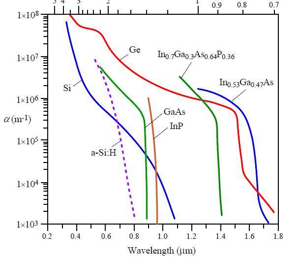 如果我们已经知道某种材料的吸收谱,能否知道此种材料确定的厚度下,对光吸收的比例? 例如,我们知道GaAs的吸收线谱,如下图,我们能否计算在某一厚度下,GaAs对太阳光吸收的多少?或者是需要多大的厚度就能实现全部吸收? 吸收系数.jpg |