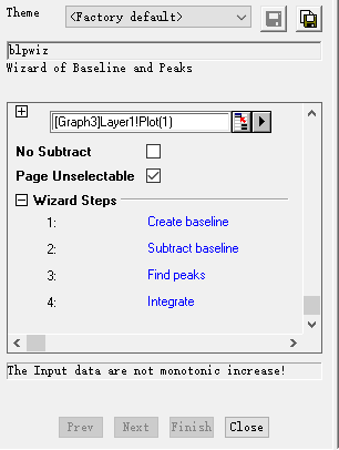 我在用origin8.0拉基线的时候打开对话框但是无法进行下一步的操作,如图片显示。 我发现对话框中显示输入的数据不是单调递增,是和这有关吗? 有点急,恳求各位帮帮忙,谢谢啦 8174.tmp.png |