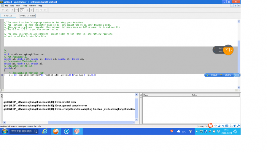 origin8.0多元非线性回归中自定义函数编译失败问题