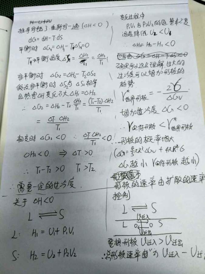 形核需要做功,在外界没有体积功的情况下就需要降低吉布斯自由能来补充这部分能量,降低温度改状态吉布斯自由减小,就有利于形核,但温度太低物质的扩散速率减小抑制形核 发自小木虫Android客户端 |