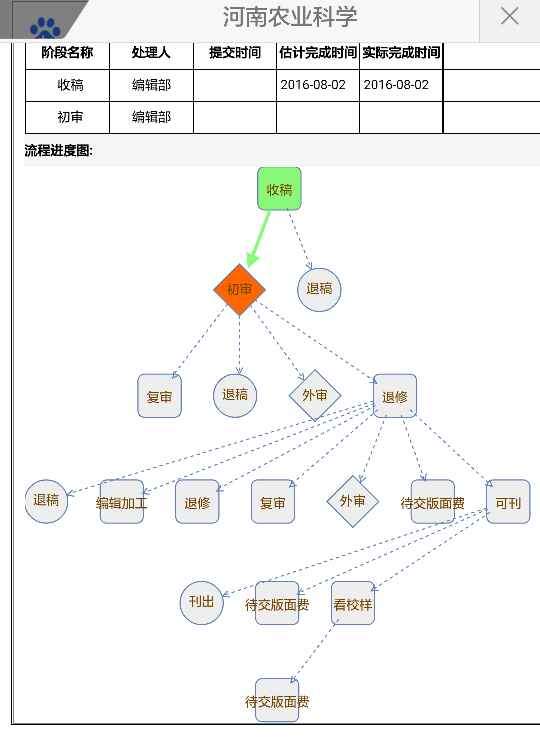 7月30日投河南农业科学(核心期刊)一篇文章,8月2号编辑部接受并挂号进入初审,可是到现在还是初审,这是什么情况,有大神清楚吗? 发自小木虫Android客户端 |