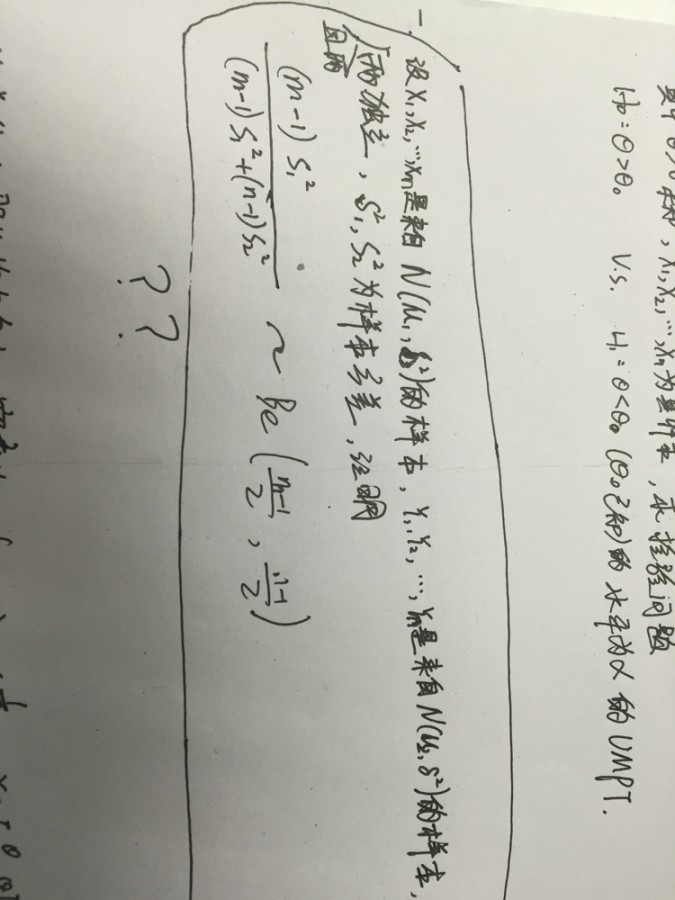 具体不说了 ,主要是符号难写,只说一下思路,这个题目比较难,应该是概率方向理科的 1) 分子分母同时除以(m-1)S1^2,这样,分子就为1了,分母变成了1+ CS2^2/S1^2 2)S2^2/S1^2的分布是可以求出来的,是F(n-1,m-1) 3)这样就变成了1/(1+aX)的形式,其中常数a和2)中的推导有关,具体是多少,楼主可以退一下,可能是1 X~F(n-1,m-1),然后按先求1/(1+aX)的分布函数,再求导得到密度函数的过程,将得到的密度函数和Beta分布对比,即证明完成 祝好 |