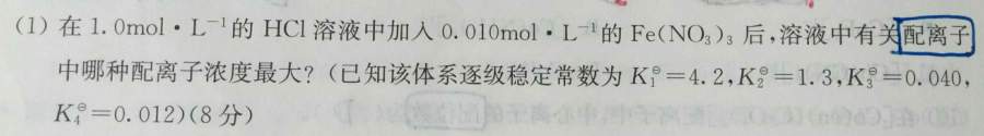 1.0mol/LHCl溶液加入0.01mol/LFe(NO3)3会生成什么配合物,是如何分步的? 发自小木虫Android客户端 |
