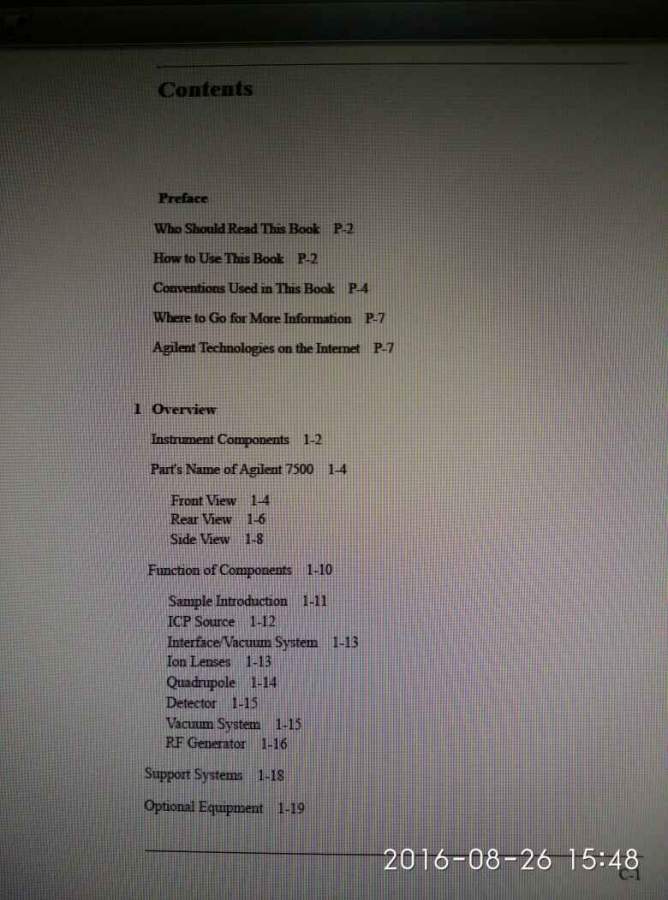 实验室新买了ICP MS8800,但是年后才能安装,,想提前了解一下仪器,求仪器硬件操作手册,,主要介绍仪器的各个硬件以及如何维护的。实验室现有一台7500,有一份相关的材料,介绍的很详细,如下图,所以想找8800相关的这份文档,求助各位icpms大神,不胜感激 发自小木虫Android客户端 |