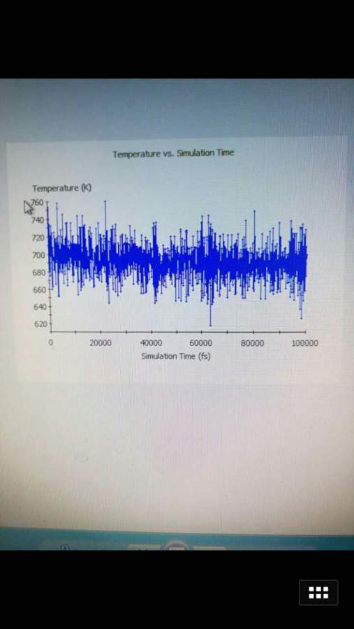 在用MS模拟水分子的扩散系数的时候,选的是NVT系综,初始温度设置773K,积分算法选的Ewald,控温方法选的是Nose,结果模拟结束后,得到的温度结果在690k附近波动,很不能理解这是为什么?请问各位这是怎么回事?谢谢了 附图是模拟的温度结果 124124345003837093.jpg |