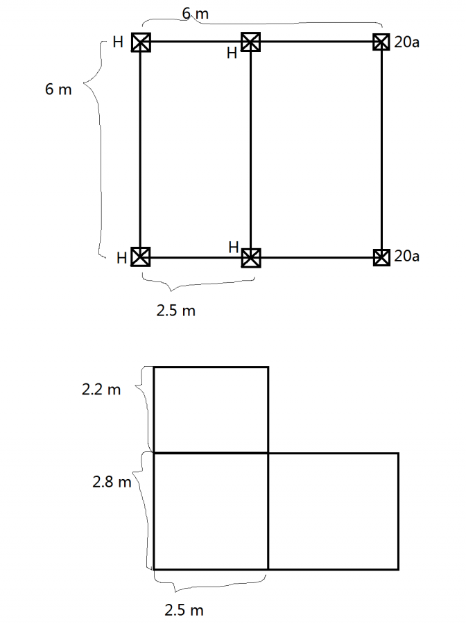 要建一个6米*6米,高度5 米 的二层钢平台,钢平台和设备总重10吨,其中6.5吨的重量在H刚的那一跨,立柱分别使用了250*250的H钢和20a工字钢。具体如下图,请大神们看一下能不能行?这样的立柱,大概可以承受多少吨的重量?再就是有人说工字钢不能做立柱,只有H钢能行,是这样吗? 1.png |
