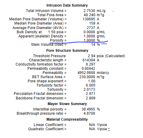 压汞法孔隙率异常显示为1%,可以根据数据中的哪些参数来算孔隙率?已有1人参与