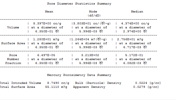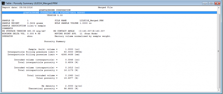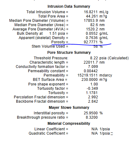 使用Autopore IV 9500压汞仪测细菌纤维素的孔结构,得到的数据中孔隙率显示为1%,而之前测的数据平均90%,测试老师说,孔隙率显示不正常,可以通过其他的来看,,我想问下,可以根据数据中的哪些参数来算孔隙率?还是因为中间压汞仪修理了一次,数据不准确? 之前测的.PNG 最近测的.PNG@hwweven |