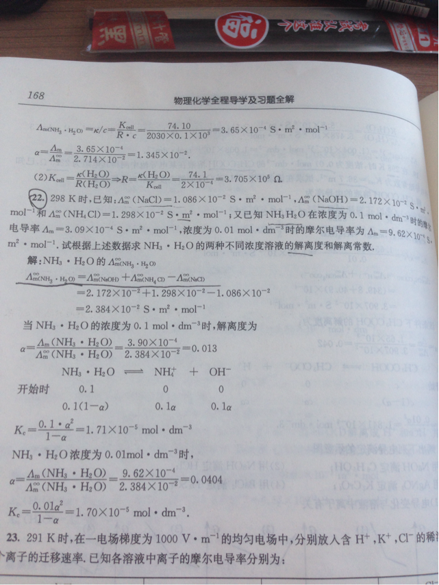 根据离子独立移动定律可知,同种离子在无限稀释的溶液中的无限稀释摩尔电导率是相同的!所以,弱电解质的无限稀释摩尔电导率可由强电解质的无限摩尔稀释电导率求得。可以吗?理解吗? 发自小木虫IOS客户端 |