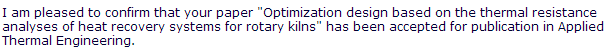 经过前两篇的SCI的投稿,感觉写起文章来自己更有自信和心得了,祝福论坛虫友和大家也一切顺利。 这次中的是ATE,做的方向是工业回转窑余热回收系统的设计优化 第二篇(Applied Energy): https://muchong.com/bbs/viewthread.php?tid=10481587 第一篇(International Journal of Heat and Mass Transfer): https://muchong.com/bbs/viewthread.php?tid=9323307 第二篇和第三篇中的时间距离不长,因此没有太多金币了 ![]() QQ截图20160902091117.png |