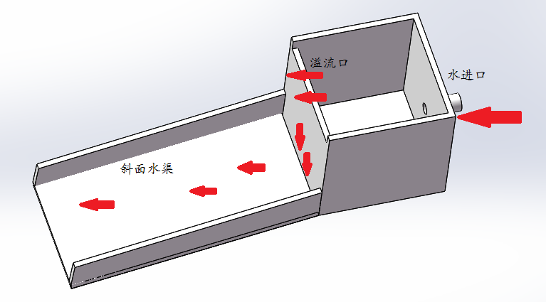 前辈们,这个容器从进水口通入水,至容器满后溢流,然后流入下方斜坡水渠,已知进口流速,怎样模拟这个流动过程?我想得到溢流层厚度和溢流后斜坡水渠中水流的速度。可以模拟出来吗?请指教,谢谢了~ 溢流2.png |