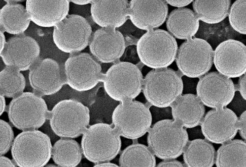 各位大神帮忙分析下为什么我做的碳球之间有这种棒连接,并且碳球外感觉又包了一层似的(都有个圈圈)?原料是间苯二酚、甲醛及严重过量的尿素