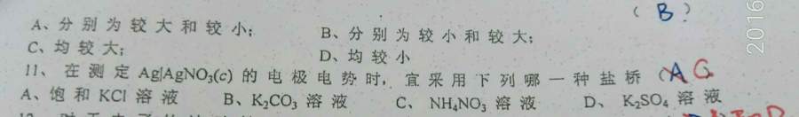 选c,盐桥的选择是两个阴阳离子离子电迁移率要接近相等,并且不与原液反应 发自小木虫IOS客户端 |