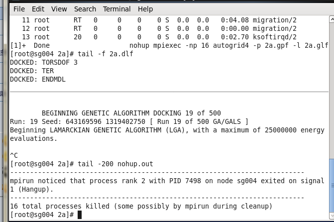 在centos 提交autodock 的作业,运行一半就停止了,检查了好遍,不知道哪里出问题