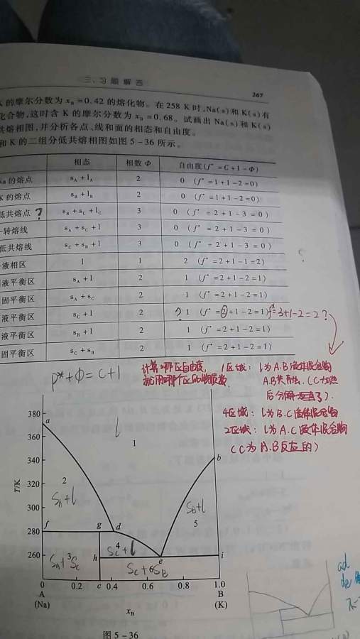 不明白1.2.4.5区域中的熔液L的成分分别是什么?都一样吗?还是是红笔所写的那样?比如说求4区域的自由度时,求物质S时涉及到了L的成分,所以不太清楚。 发自小木虫Android客户端 |