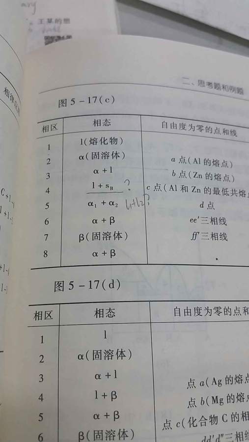 1.区域5可不可以写成l1+l2?答案给的α1+α2。原因是? 2.区域4我觉得是l+β,它类似于课本上的一幅相图,但答案给的是l+Sв。原因是? 图1为题目,图2为课本图,图3为答案。谢谢! 发自小木虫Android客户端 |