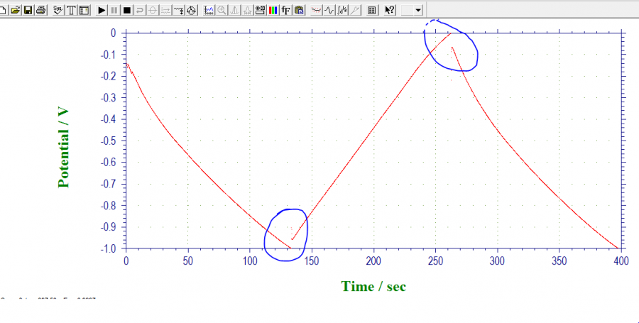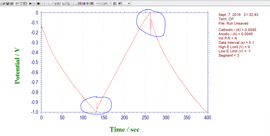 如图所示,在恒电流充放电时,在最高处出现了断点或者突降,请问这是什么原因,另外怎么样设置参数才能使其充放电的电压都为正数呢 2222.PNG 22222.PNG 111111.PNG@a88592718@Gamry-电化学@louderbe@langzhizhou |