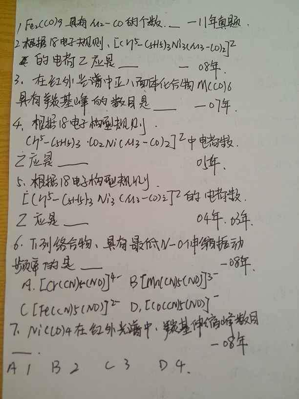 过奖了。第七题,要是能知道分子结构是什么样的,也就能选出答案来了。可是结构是什么样的不太清楚。其他的那几个,实在是不知道该如何下手。 发自小木虫Android客户端 |
