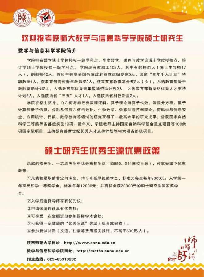 欢迎报考陕师大数学与信息科学学院硕士研究生