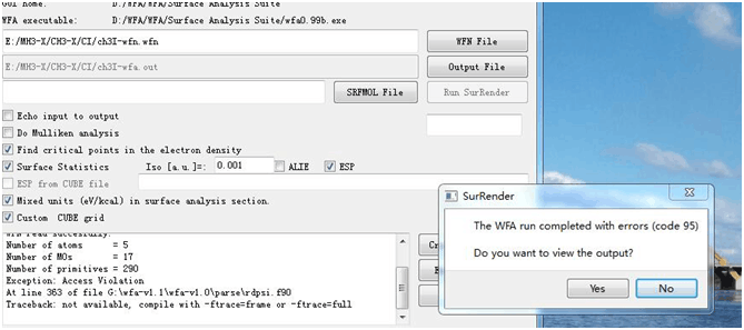 方法基组MP2/aug-cc-pvtz,计算CH3X静电势,X=(F、Cl、Br、i)其中F、Cl、Br的静电势都能算出来,但是CH3I就算不出来,即使需要加上nosymm和6d,10f还是会出现这个问题,计算CH3I的wfn文件时能正常结束,但是WFA就算不了,截图如下。拜托 CH3I计算wfn的输入文件 计算静电势的出现的错误 |