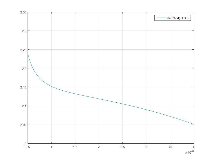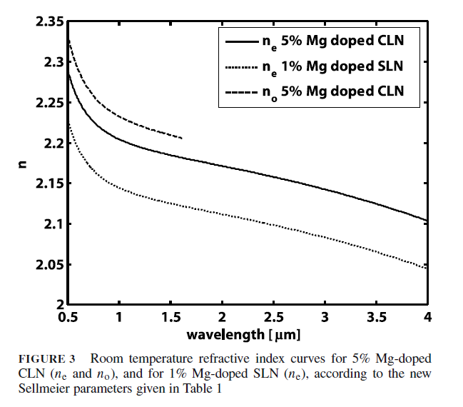 5% MgO-doped congruent LiNbO3的折射率计算的问题。