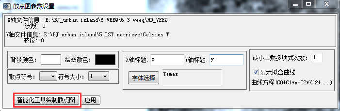 使用ENVI5.1软件,安装了散点图工具扩展模块,使用时,点击“智能化绘制”弹出的窗口中的散点图不全,并不是完整的影像范围,而且这个窗口中的操作都非常卡。如果直接点击“应用”可以显示方程系数和曲线,但是不知道R方检验值是多少。请问有遇到这样的问题的小伙伴吗,求帮助呀。 散点图窗口.png 散点图工具.png 影像.png 智能化散点图工具窗口.png |