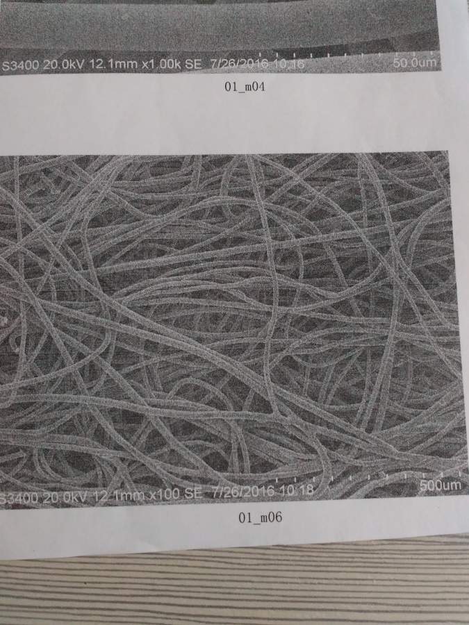 这是氧气传感器中的电极隔膜,电解液是强碱性的,这纤维隔膜看上去朴实无华,但是性能太好,耐强碱,吸水性超强,绝缘,而且穿刺能力也很好。用SEM拍了一下,纤维丝非常光滑啊,没见过这种,好高级的样子 IMG_20160909_103046_1.jpg IMG_20160909_103117_1.jpg IMG_20160909_103345_1.jpg |