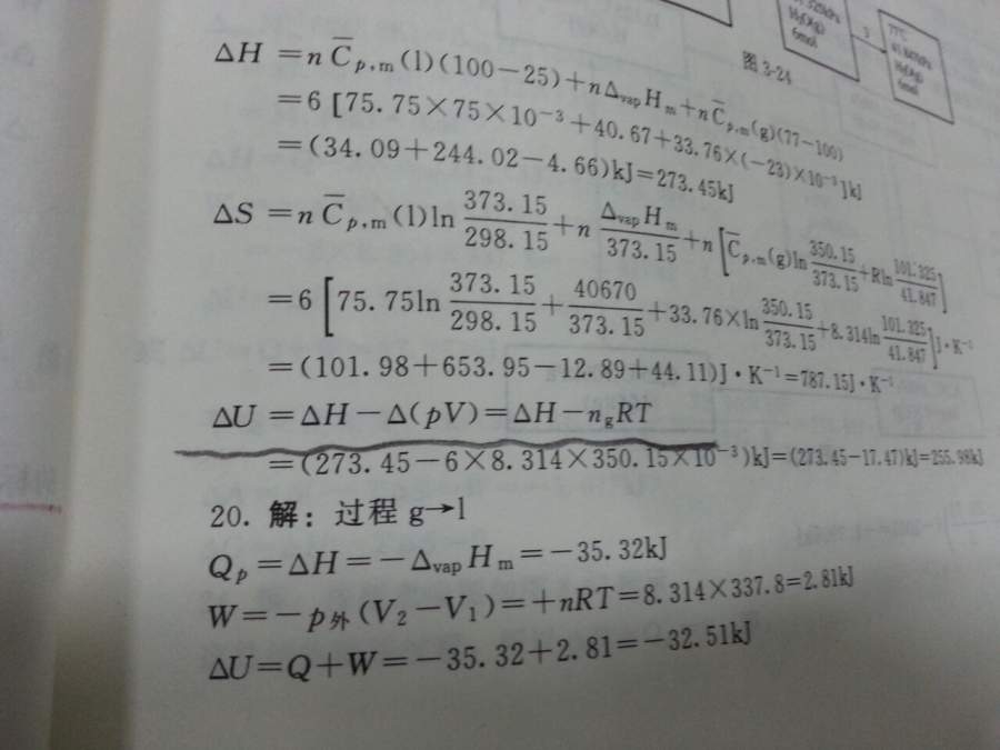 第19题,如何求热力学能变化量,答案中的划线部分,现在P,V都在改变,为什么就直接等于nRT? `I}{(ZH$7%Y4)8CSP5X_W5S.png FAF6A90DBB5452770BA88C070F644F1B.jpg A35EABA2B27D2B59901F4D08A262D181.jpg |