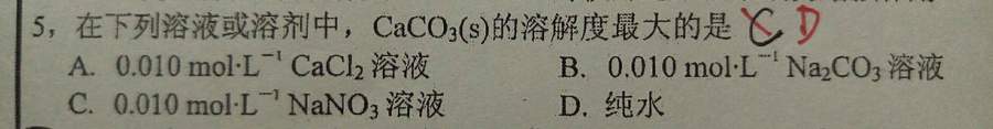 个人理解A,C均属于同离子效应,C属于盐效应,为什么参考答案会是D而不是C.请大神指教。 发自小木虫Android客户端 |