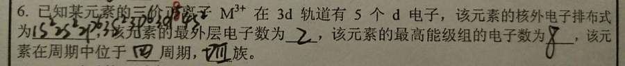 探讨一下这个问题,没法发帖了,见谅。此题我的个人看法:三价正离子3d轨道有5个电子,根据电子能级排布,该元素的电子排布为1s2,2s2,2p6,3s2,3p6,4s2,3d8(因为正三价3d轨道失去三个电子为5个电子,所以原本3d轨道有8个电子) ,而参考答案为1s2,2s2,2p6,3s2,3p6,3d6,4s2 发自小木虫Android客户端 |